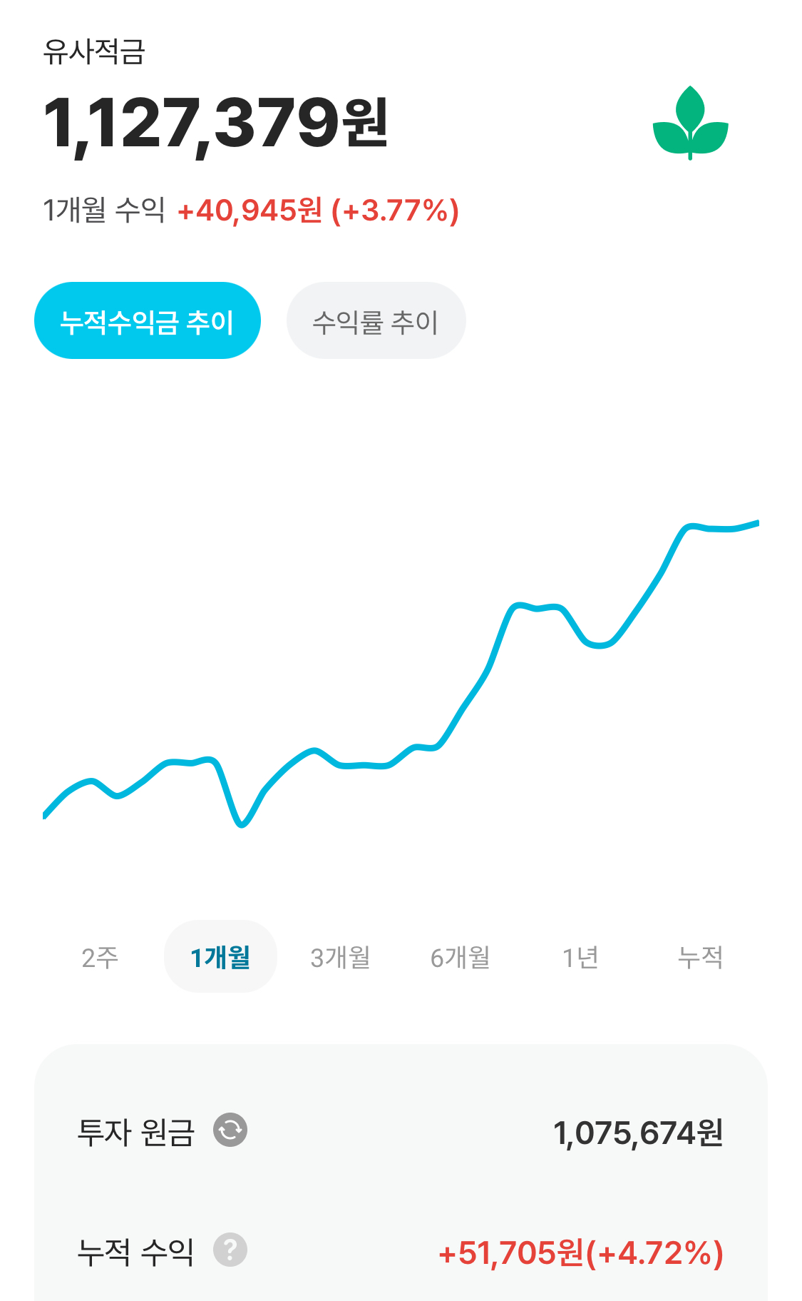 약 1달 반 정도 지난 지금, 내 100만 원과 중간에 추가 입금한 7.5만 원은 현재 112만 원이 되어 있다. 수익률만 놓고 보면 4-5% 정도, 누적수익 5만 원 정도 벌었다. 가만히 놔두고 알아서 굴려주니 정말 편하다. 그냥 돈 넣어두고 신경 끄면 된다.