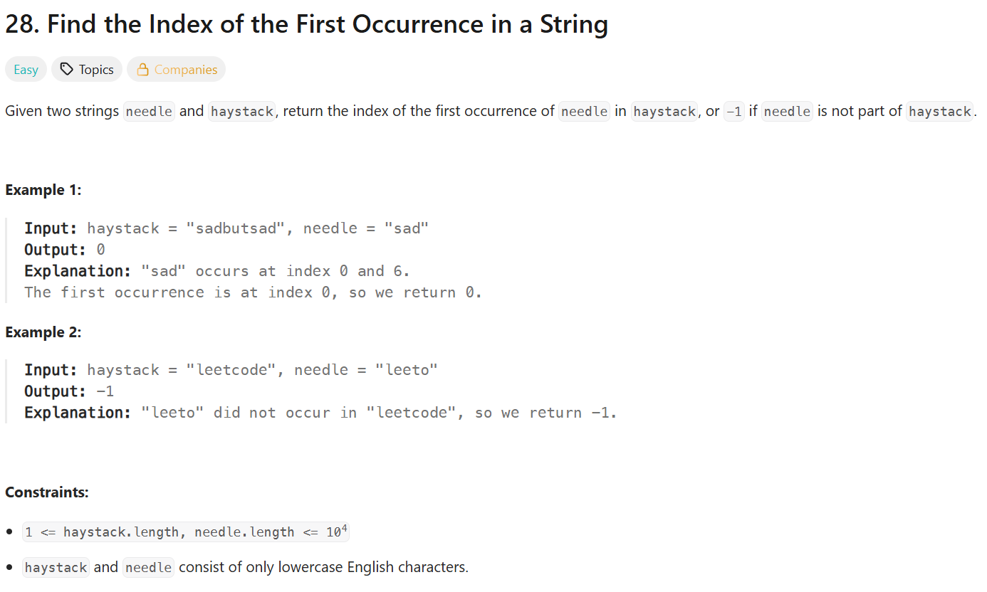 [C] LeetCode 28. Find the Index of the First Occurrence in a StringCoding/PS2026. 3. 20. 20:11